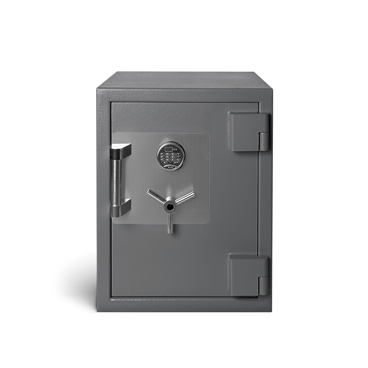 The body and door of our TL-30 safes are constructed of hardened steel, high-pressure concrete, and other proprietary hard-to-drill products. The body is 3″ thick and the door is 5-1/4″ thick. The door is protected by eight 1-1/4″ thick bolts (4 active).