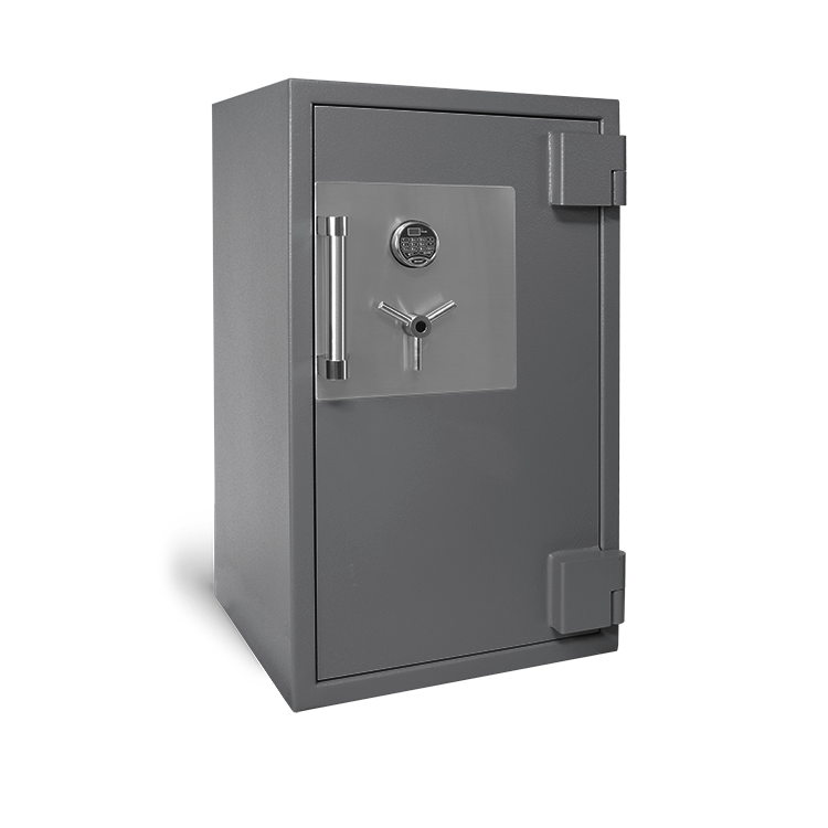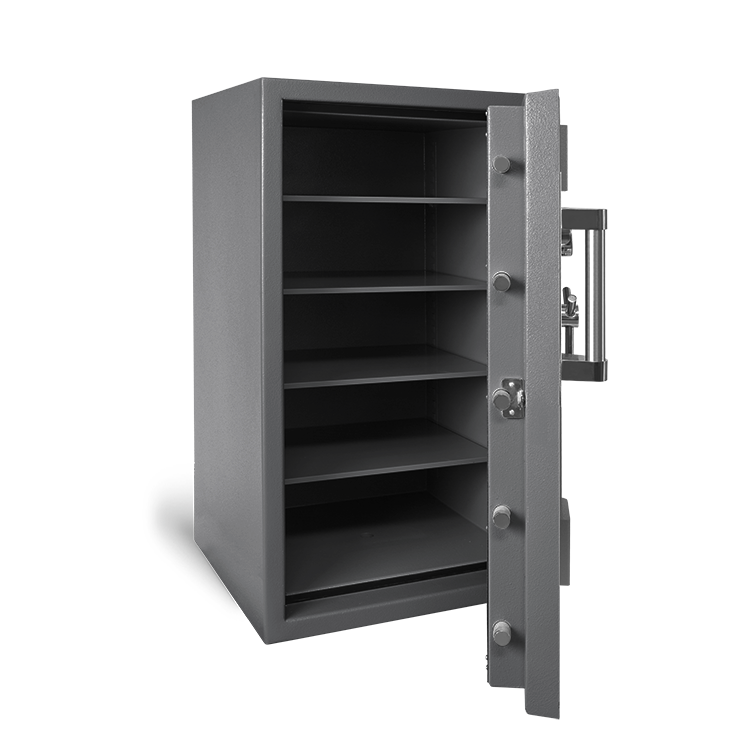 The body and door of our TL-30 safes are constructed of hardened steel, high-pressure concrete, and other proprietary hard-to-drill products. The body is 3″ thick and the door is 5-1/4″ thick. The door is protected by ten 1-1/4″ thick bolts (5 active).