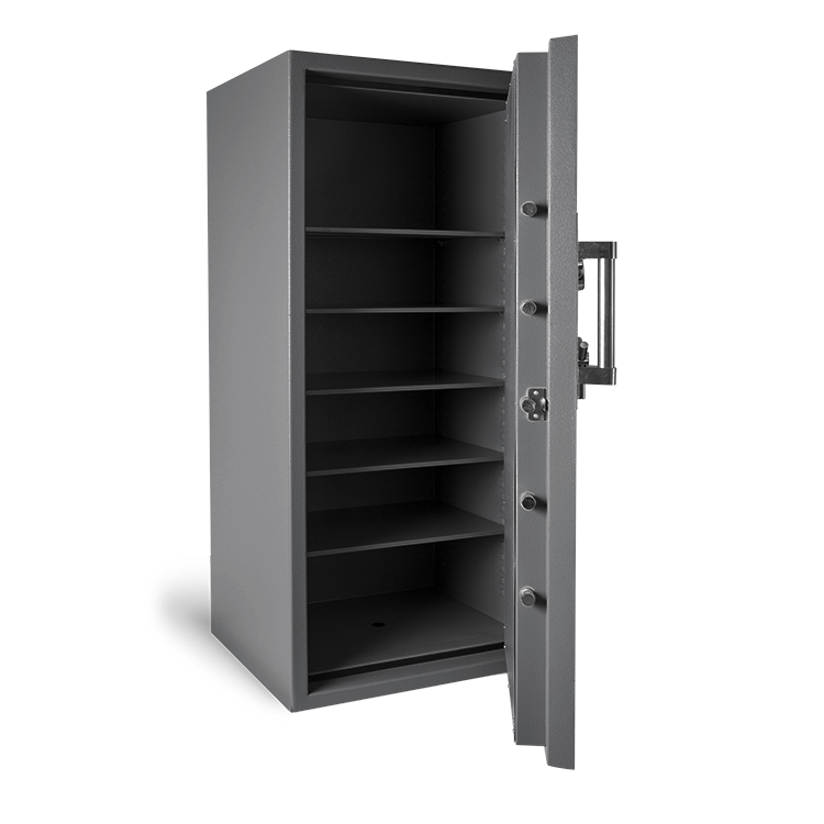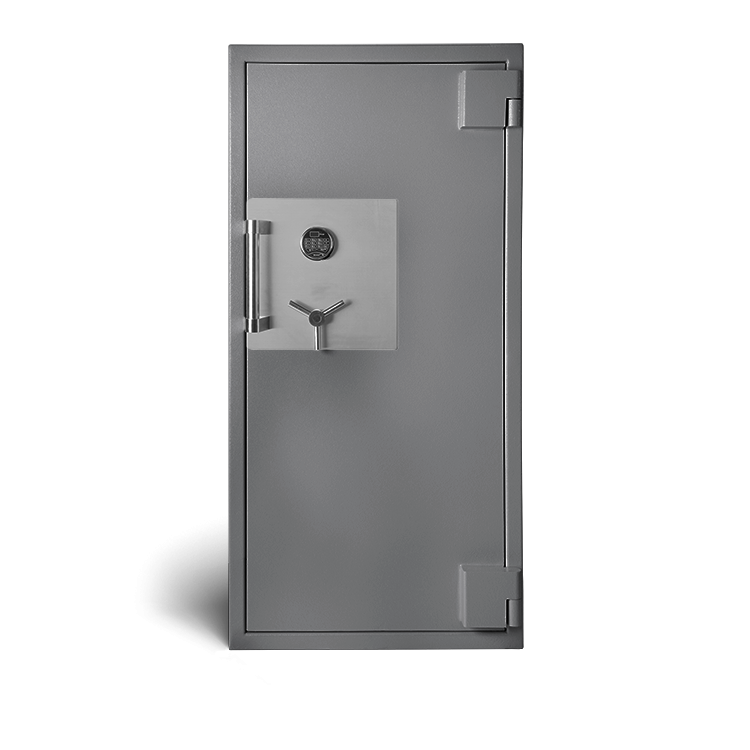 The body and door of our TL-30 safes are constructed of hardened steel, high-pressure concrete, and other proprietary hard-to-drill products. The body is 3″ thick and the door is 5-1/4″ thick. The door is protected by ten 1-1/4″ thick bolts (5 active).